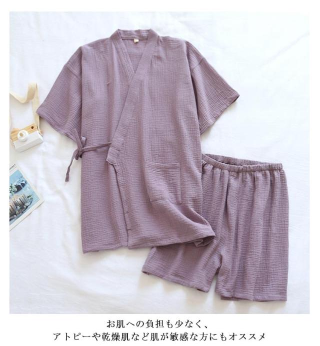 2点セット ガーゼコットン ガーゼ メンズ 半袖 ガーゼパジャマ 綿 サマー 半袖 コットン レディース パジャマ レディース浴衣 前開き 上下セット パジャマ 薄手 甚平 セットアップ レディース じんべい 和式 春夏 二重ガーゼお寝巻き 夏 ルームウェア