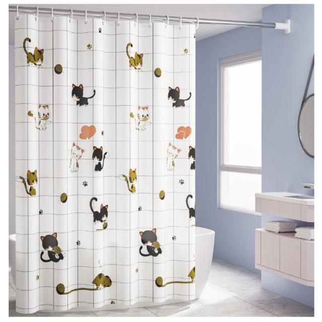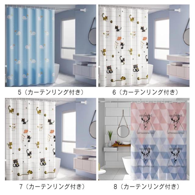防カビ 浴室 シャワーカーテン ユニットバス 目隠し 防水 断熱 バスカーテン 防カビ カーテンリング付き お風呂カーテン お風呂 間仕切り バスルーム 送料無料 取り付け簡単 カーテン 北欧風 保温カーテン 脱衣所 洗面所 水滴 猫 可愛い