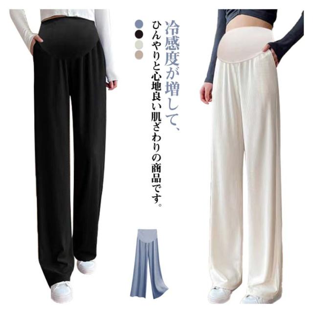 ルーム リブ パンツ レギンス ガウチョパンツ ワイドパンツ マタニティパンツ 春 美脚 夏 秋 薄手 お腹楽ちん マタニティ 大きいサイズ マタニティ パンツ ボトム ルームウェア 部屋着 産前産後対応 ストレッチ おしゃれ