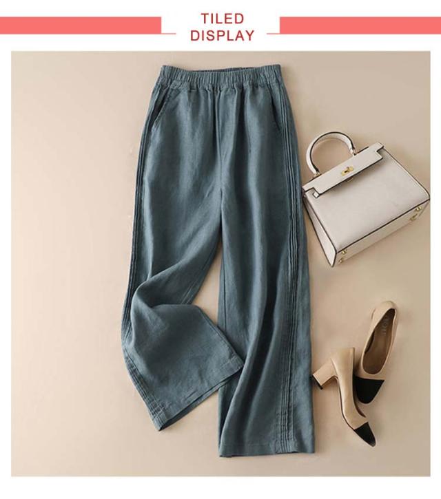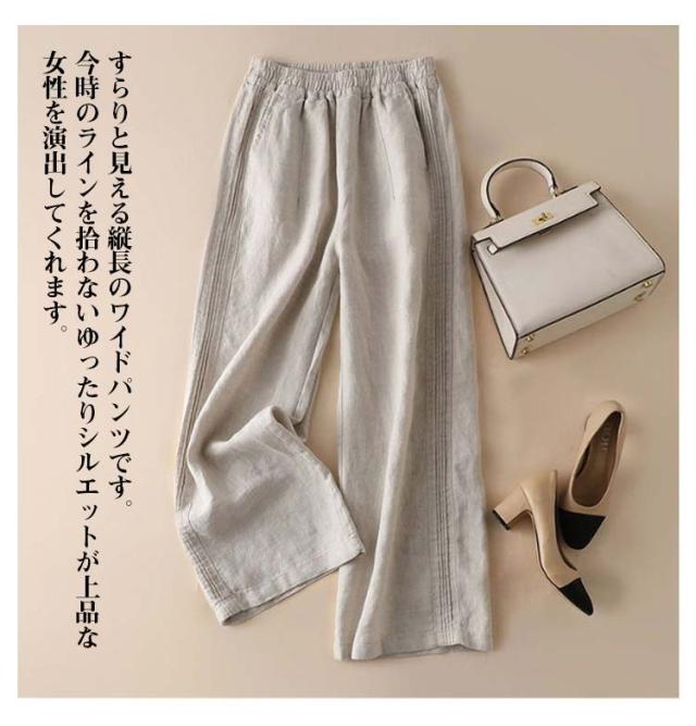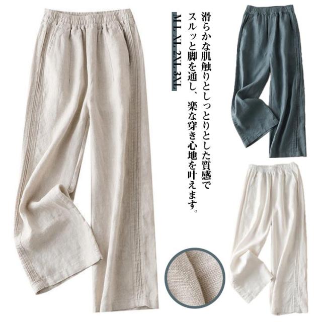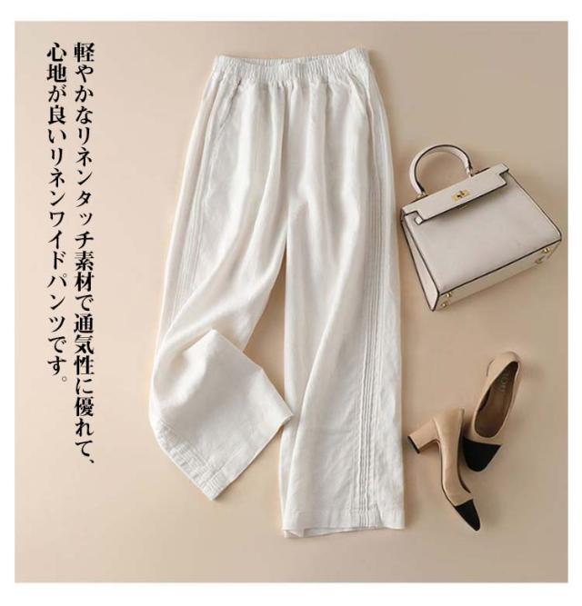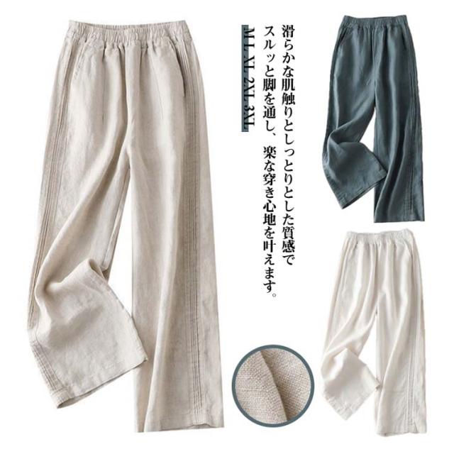 カジュアルパンツ 無地 カジュアル レディース ワイドパンツ リネンパンツ ハイウエスト リネン コットン ワイドパンツ パンツ 春夏 ロング丈 ゆったり シンプル ウエストゴム おしゃれ 通勤 きれいめ
