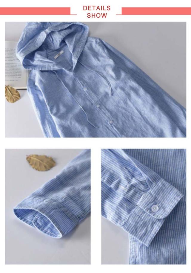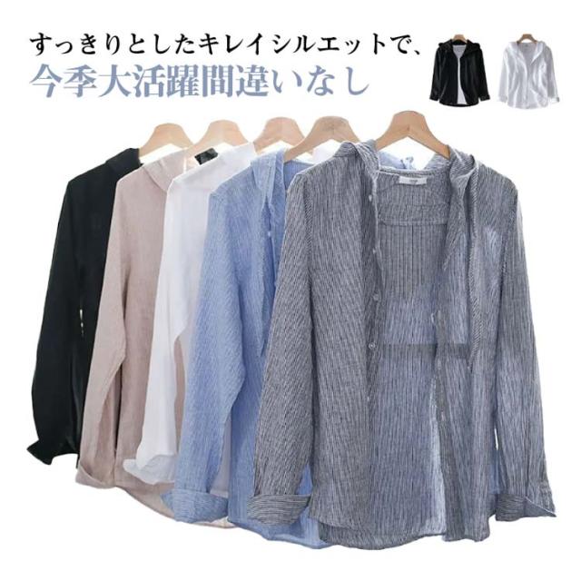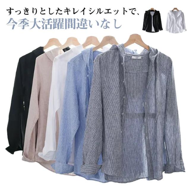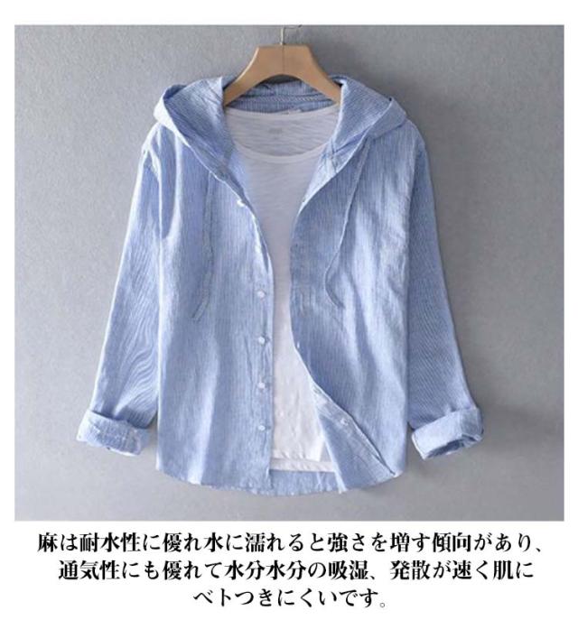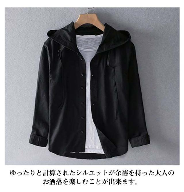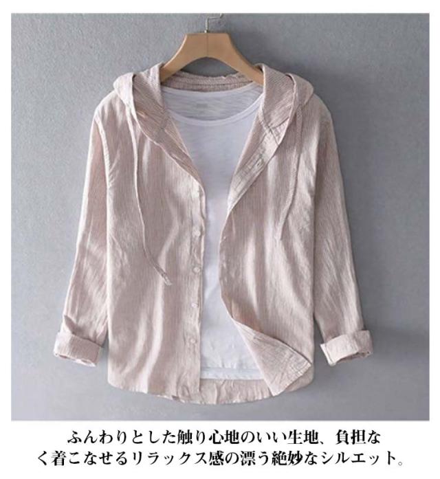 メンズ 通気性 長袖 トップス 綿麻シャツ 薄手 リネンシャツ リネンコットン リネンシャツ シャツ カジュアルシャツ 無地 フード付き UVカット 長袖シャツ 爽快 春夏