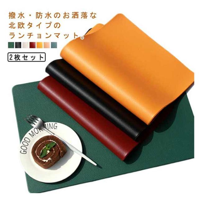 お洒落 ランチョンマット 北欧 PUレザー ティーマット ランチョンマット 滑り止め 耐熱 撥水 ランチマット 2枚セット 防水 キッチンマット 30cm×45cm 汚れにくい お手入れ簡単 ダイニング テーブル用