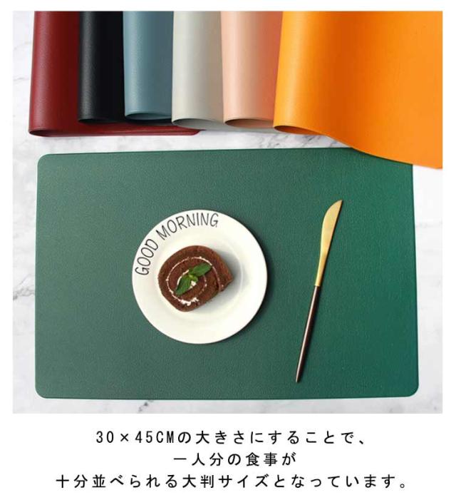| 撥水・防水のお洒落な北欧タイプのランチョンマット。 PUレザーを使用し、耐久性があり、テーブルを傷付けなくしっかり保護できます。 生地の凹凸が滑り止めになり、子供でも使いやすいランチョンマットになっています。 30×45cmの大きさにすることで、一人分の食事が十分並べられる大判サイズとなっています。 簡単なお手入れ!柔らかく湿らせた布やスポンジで簡単に清掃できます。 北欧のインテリアとしてテーブルコーデをお洒落に引き立ててくれる。 | |