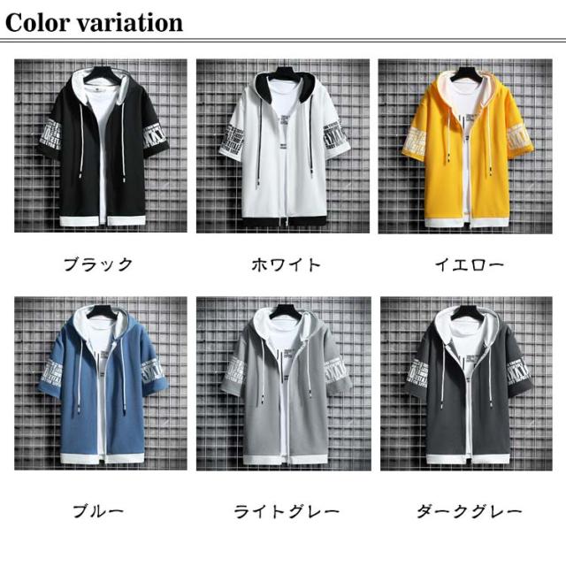 夏服 春夏 スウェットパーカー パーカー 半袖 メンズ フード付き 半袖パーカー 半袖パーカー フード付きTシャツ トレーナー トップス おしゃれ カジュアル 大きいサイズ メンズファッション ジップパーカー アウトドア 羽織 羽織り