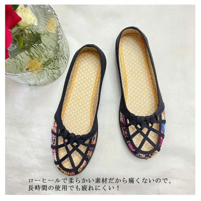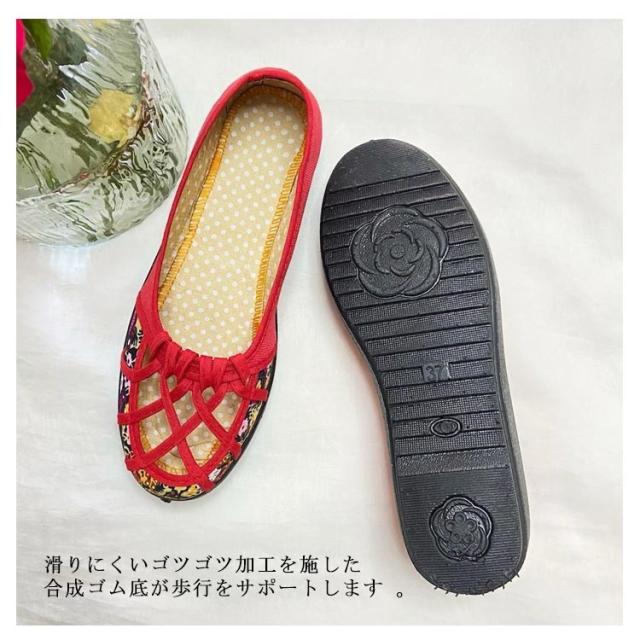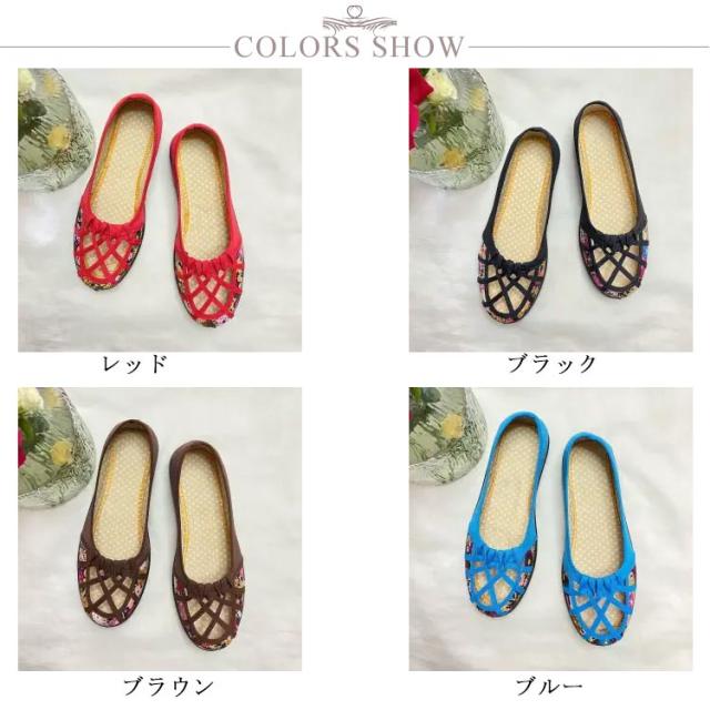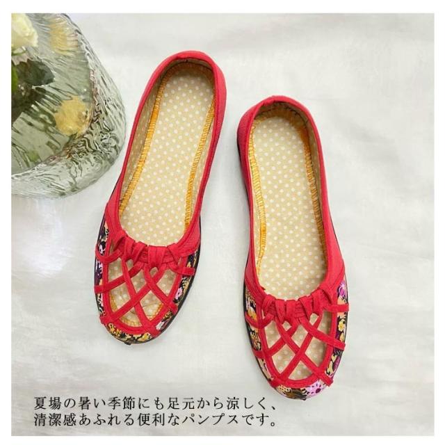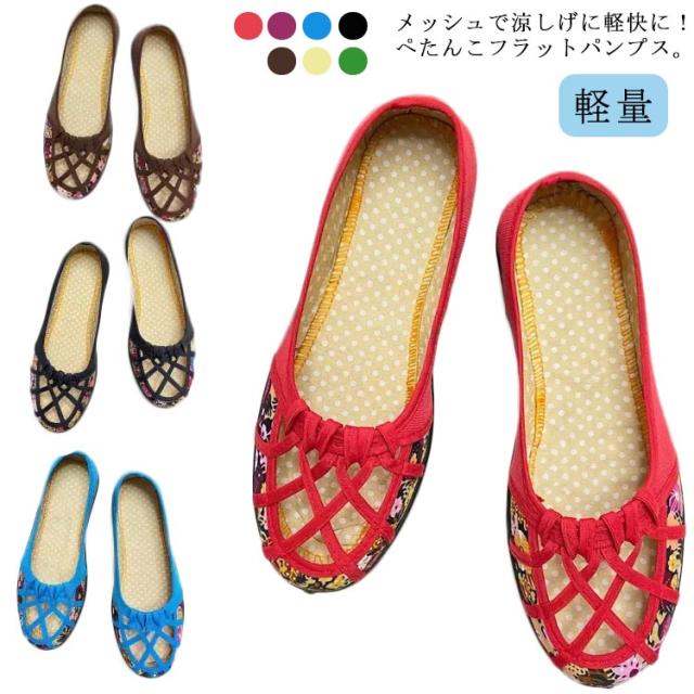 痛くない メッシュ 軽量 ぺたんこ ローヒール かわいい 花柄 パンプス 夏パンプス ラウンドトゥ ローヒール 靴 軽い メッシュ おしゃれ フラットパンプス 室内履き 通勤 ローヒール 仕事用 涼しい 立ち仕事 レッド ブラック ブラウン ブルー イエロー ピンク