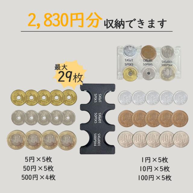 | 商品紹介 | これ1つで簡単整理小銭をスマートに持ち運び お会計の時、小銭の支払いに手間取ったことありませんか? ついつい持ち運ぶのが面倒で小銭を使えず溜まってませんか? ポケットのじゃらじゃら、お会計も楽々簡単解決 キュッとはめるだけ、ケース付きでコインをスマートに管理 |