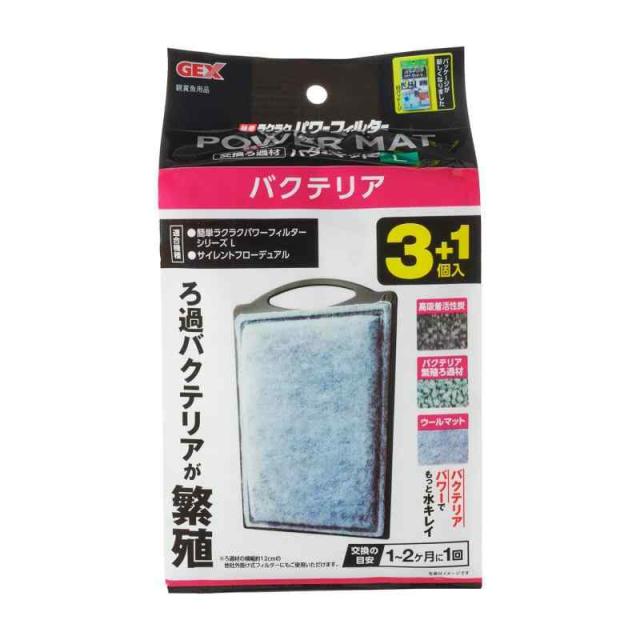 GEX AQUA FILTER バクテリアパワーマットL 高級着活性炭+バクテリア繁殖ろ過材+ウールマット 簡単ラクラクパワーフィルターL用交換ろ過材 3+1個入
