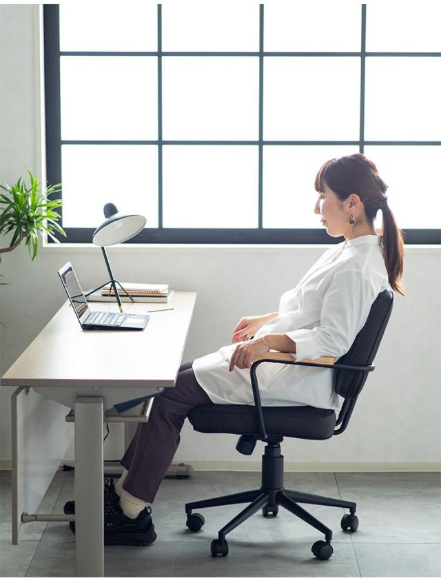 肘付ガス圧チェアー エイム BK デスクチェア おしゃれ 昇降式 ソフトレザー オフィスチェア イス PCチェア 学習チェア ワークチェア 事務椅子 いす 椅子 チェア チェアー(代引不可)【送料無料】