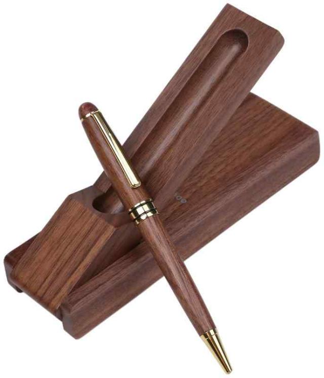 Daisybee 木製 ボールペン ケースセット 油性 黒芯 プレゼント ギフト用 天然木 (胡桃スタンドタイプ)