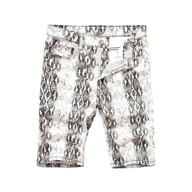 夏物 ド派手 白蛇柄 プリント ハーフパンツ 010 デニム ジーンズ 半ズボン 短パン ヤクザ ヤンキー オラオラ 悪羅悪羅 オラオラ系 部屋着 服 メンズ ファッション