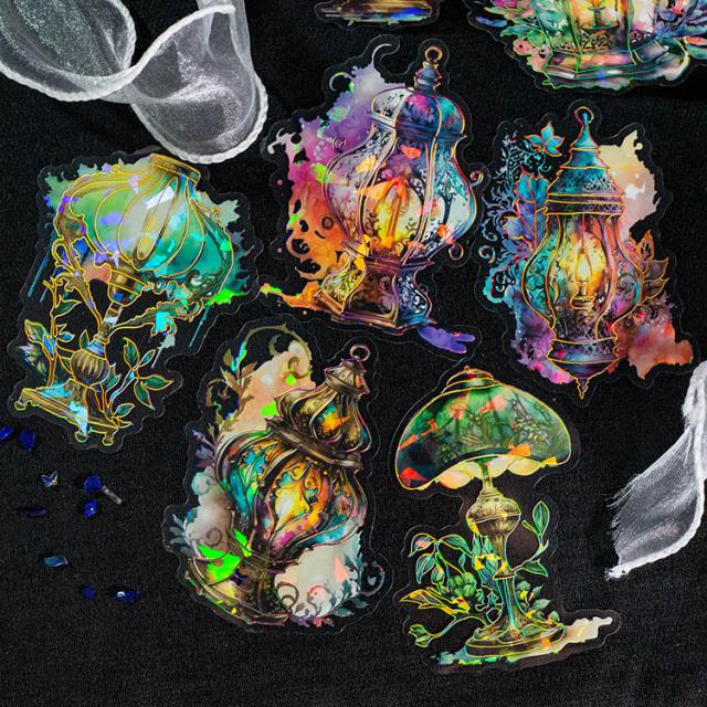 オーロラ箔押し 貝シェル加工 大きめ コラージュ 素材 シール ステンドグラス クリアシール PET 耐水 ステッカー 神秘 幻想 華やか おしゃれ アンティーク レトロ 生活 雑貨 花柄トンボ 鍵 蝶 羽根 テーブルランプ 窓 扉 貝殻 デコ ハンドメイド デコレーション DIY