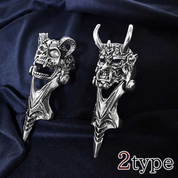 鬼や般若の顔、ツノをモチーフにしたこのリングは、パンクスタイルを象徴するアイテムです。