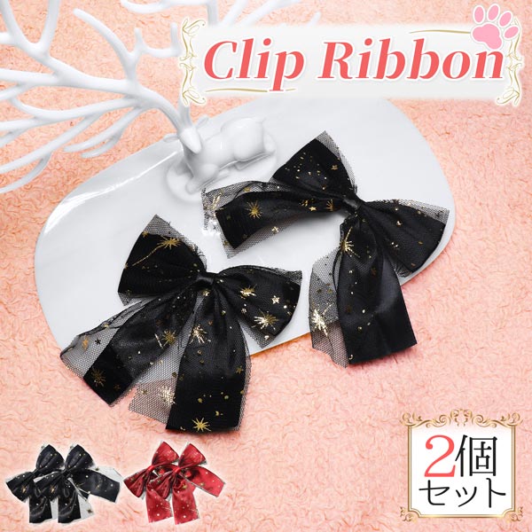 2個セット ヘアピン ヘアクリップ リボン レース キラキラ かわいい 髪留め ハロウィン コンカフェ 星 ラメ 送料無料