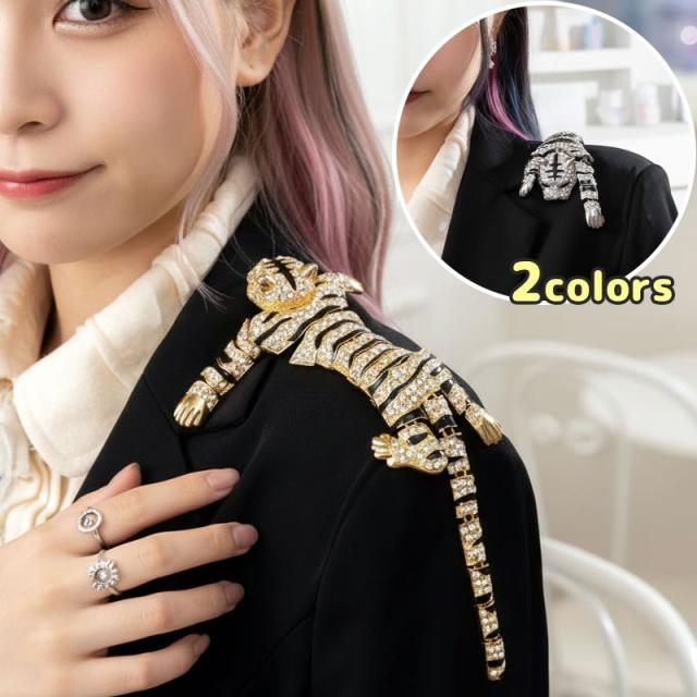 虎 ブローチ タイガー バッヂ ゴールド シルバー 肩乗り 大きい ユニーク 動物 アニマル トラ かわいい キラキラ 送料無料