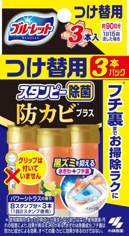 ブルーレットスタンピー除菌防カビプラス トイレ 洗浄剤 パワーシトラスの香り 詰め替え用 約90日分 貼るタイプ 流すたび除菌 洗浄