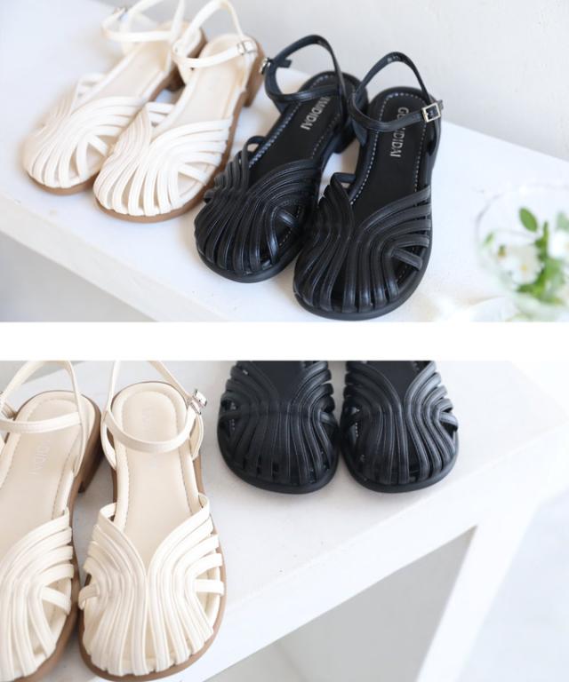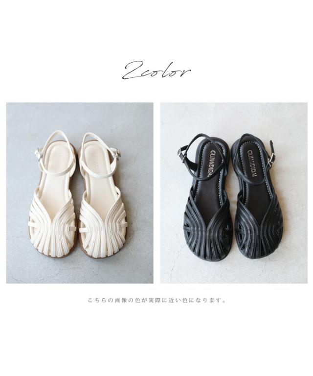 つま先シェルデザインのストラップサンダル cawaii w60727ps 35~39対応 ぺたんこ 低ヒール 日常使い ヘビロテ おでかけ アイボリー ブラック 夏 リゾート 旅行 エレガント ベーシック お洒落 個性的 大人可愛い レディース ファッション ミセス 30代 40代