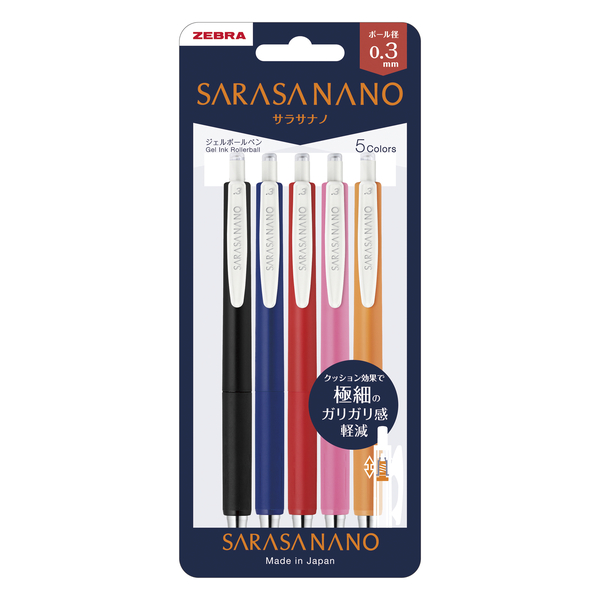 (まとめ買い)ゼブラ ジェルボールペン サラサナノ 5色セットN 0.3mm JJH72-5C-N 〔×3〕 【北海道・沖縄・離島配送不可】