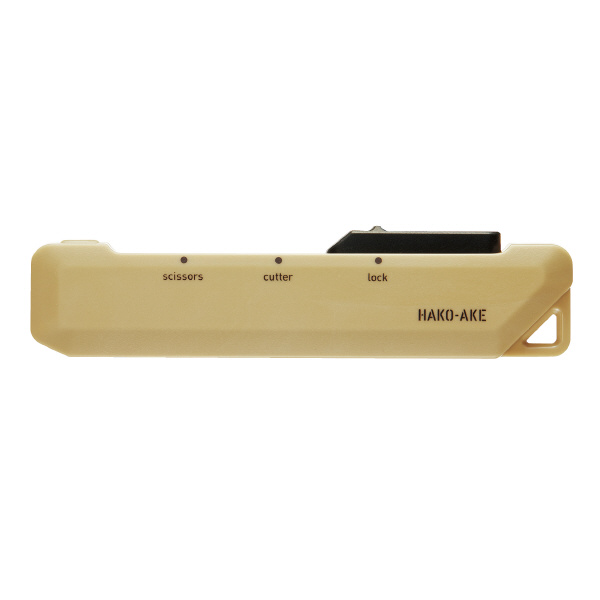●キャップのいらないスライド機構。ハンドルを軽く押してスライドすると、「開梱カッターモード」「ハサミモード」に片手でサッと切り替えられます。