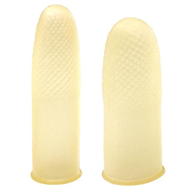 指先の第二関節近くまで深くカバーするロングタイプの指サックです。