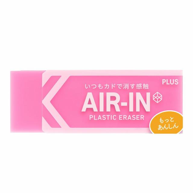 いつもカドで消す感触、こだわりのAIR入り消しゴム「エアイン」。非フタル酸系可塑剤使用の安心仕様。