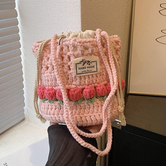 ショルダーバッグ 花 糸編み 針編み 春夏 韓国ファッション デザイン かわいい