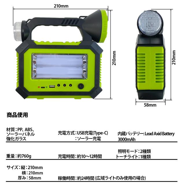 LED 投光器 ワークライト ソーラーシステム ソーラー充電 3000mAh IP50 コンパクト 明るい led 屋外 電球色 作業灯 LED投光器 LEDライト 電球 照明 キャンプ 警示灯 防災 宅配