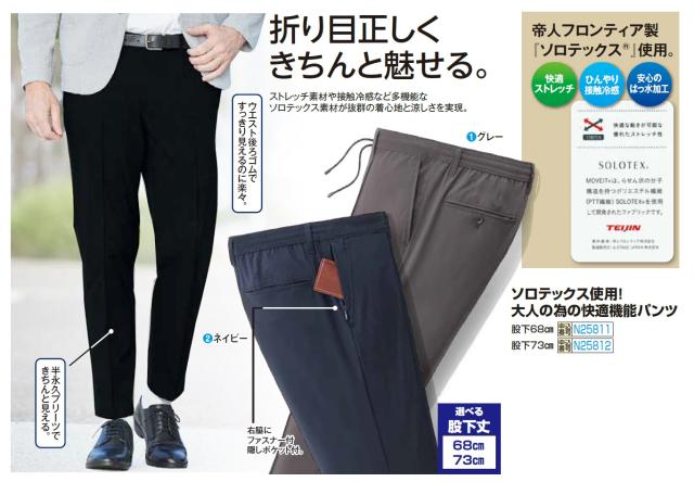 ソロテックス使用!大人の為の快適機能パンツ 全2色 選べる股下丈 スラックス 接触冷感 はっ水加工 メンズ 紳士服 シニア 男性 グレー ネイビー 紺色 灰色 無地 シンプル サマーパンツ シニアファッション 40代 50代 60代 70代 80代 父の日 お父さん 春夏 fri p25812