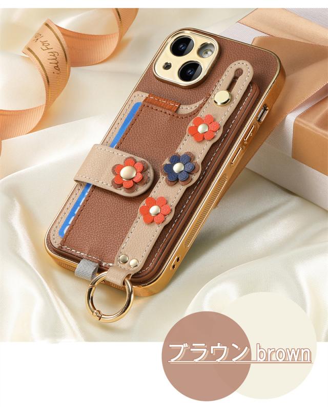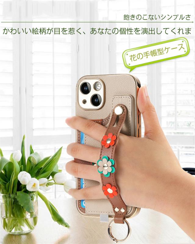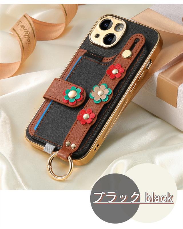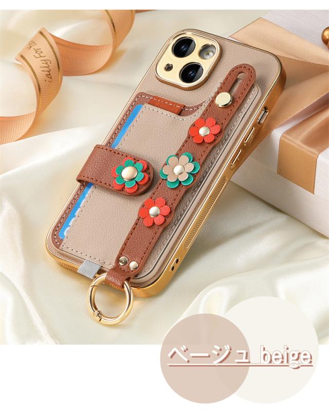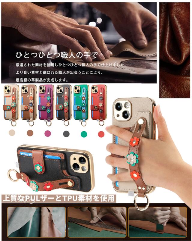 花のケース iPhone16 ケース iPhone15pro 15plus 15promax ケース iPhone16 pro max iPhone14ケース iPhone13 カバー 革 高級 カード収納 iPhone 12ProMax iPhone 12 12Pro ケース iPhone 11Pro 11 ケース 花 ベルト スマホベルト ハンドベルト リング リングホルダー