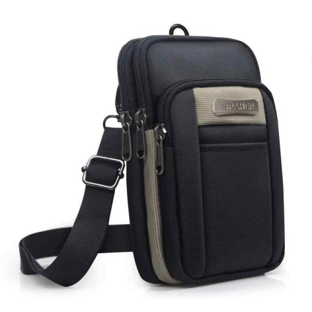 SPAHER スマホポーチ メンズ 小物入れ ウエストポーチ 防水 ベルトポーチ 小さめ マルチポーチ 旅行 アウトドア 登山 多機能収納 携帯 ガジェット ショルダーストラップ付き カラビナ付き 4層 (カーキ)