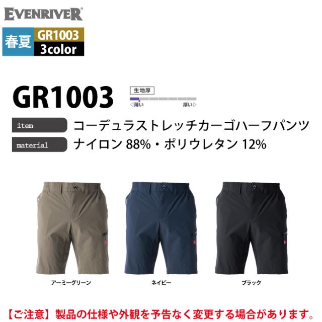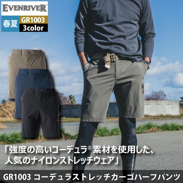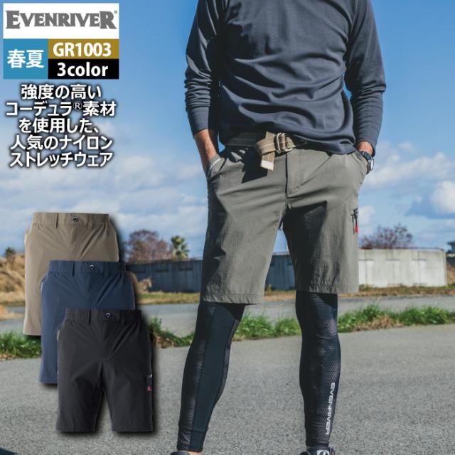 イーブンリバー EVENRIVER 作業服 作業ズボン GR1003 コーデュラストレッチカーゴハーフパンツ S-4L 春夏 作業着