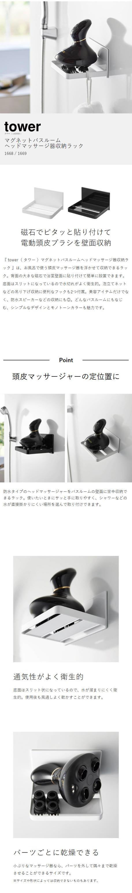 [ マグネットバスルームヘッドマッサージ器収納ラック タワー ]山崎実業 tower バスルーム ラック 収納 お風呂収納 トレー トレイ 浴室 浮かせる 磁石 北欧 おしゃれ モノトーン yamazaki 公式 ブラック ホワイト 1668 1669【送料無料】