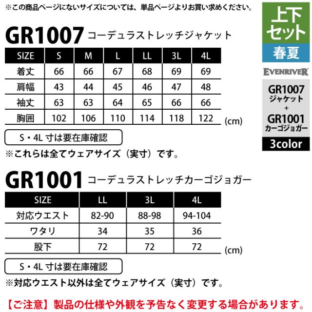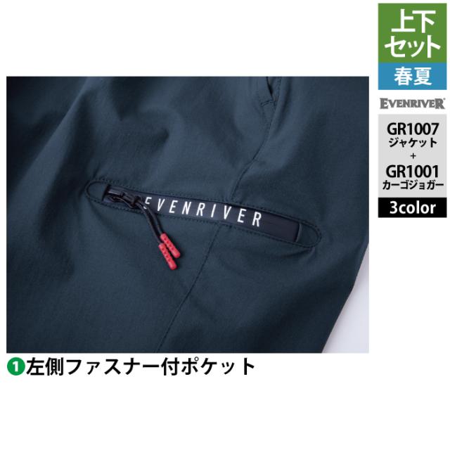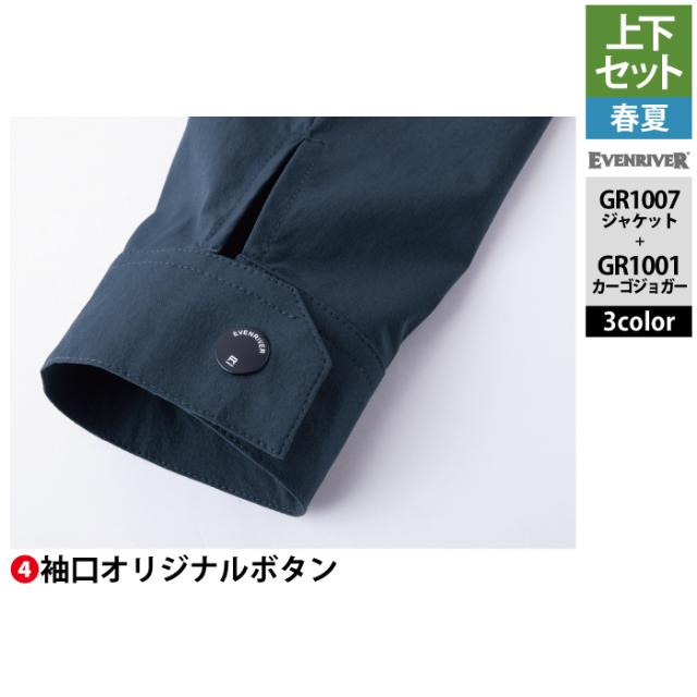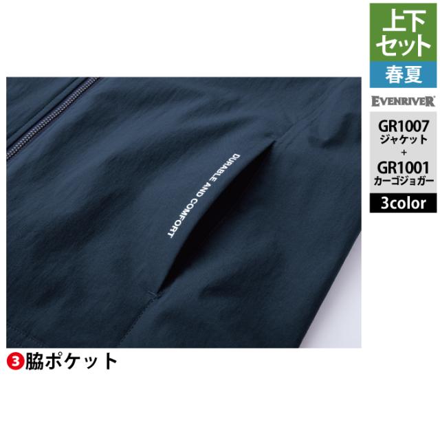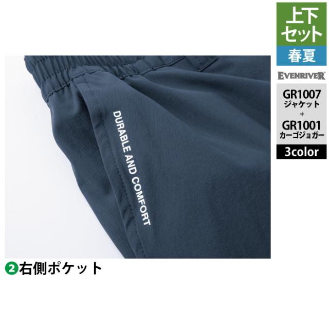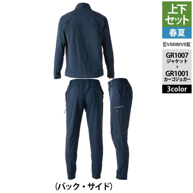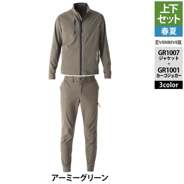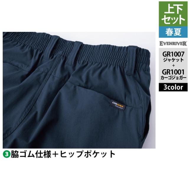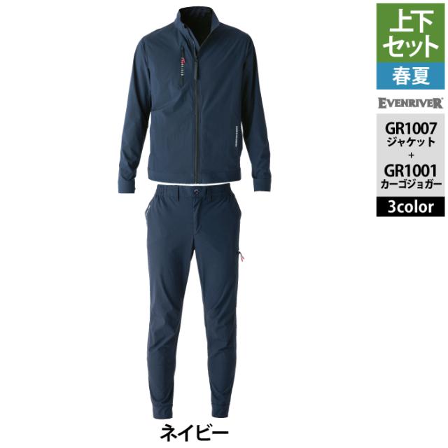 イーブンリバー EVENRIVER 作業服 上下セット GR1007 コーデュラストレッチジャケットS-3L と GR1001 コーデュラストッレッチカーゴジョガー S-3L 春夏