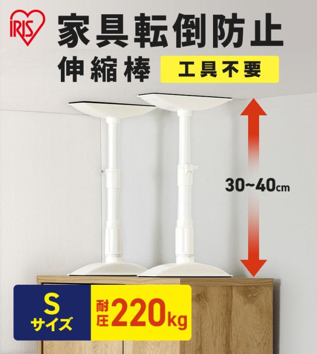 家具転倒防止 突っ張り棒 Sサイズ 2本セット 伸縮幅 30〜40cm 耐圧220kg 家具転倒防止伸縮棒 家具 固定 防災 災害 地震対策 防災用品 工具不要 簡単取付 つっぱり棒 家具転倒防止グッズ 転倒防止器具 家具転倒防止突っ張り棒 KTB-30R アイリスオーヤマ *