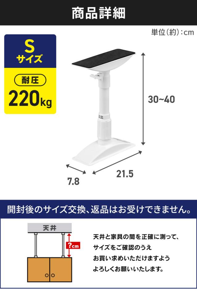※天井と家具の間を正確に測り、サイズをご確認のうえお買い求めください。
