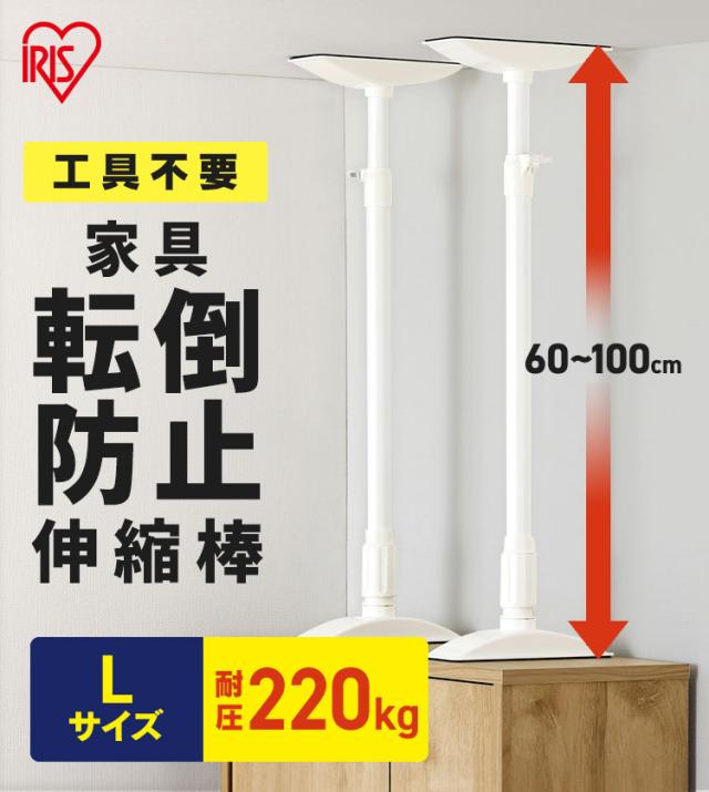 家具転倒防止 突っ張り棒 Lサイズ 2本セット 伸縮幅 60〜100cm 耐圧220kg 家具転倒防止伸縮棒 家具 固定 防災 災害 地震対策 防災用品 工具不要 簡単取付 つっぱり棒 家具転倒防止グッズ 転倒防止器具 家具転倒防止突っ張り棒 KTB-60R アイリスオーヤマ *