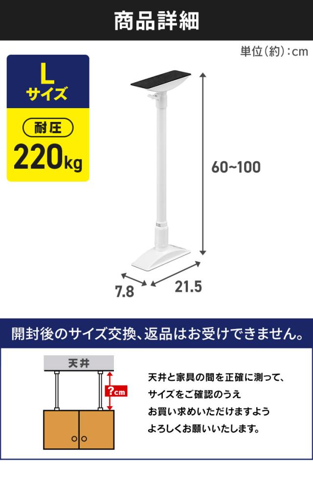 Lサイズ:幅約7.8×奥行約21.5×高さ約60〜100