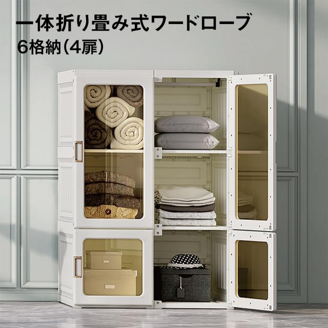 ワードローブ 一体折りたたみ式 6格納(4扉)洋服ダンス ワイドロッカー クローゼット ロッカー 収納ケース 収納 衣類 洋服 新生活 おしゃれ wardrobe02-6 agesugi_snk