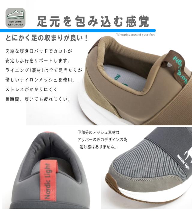 Nordic Light ノルディックライト スニーカー ミドルカット スリッポン レディース 靴 軽い クッション フラット シカ 黒 グレー ベージュ 疲れにくい 防滑 北欧 ノルウェー 3e 屈曲