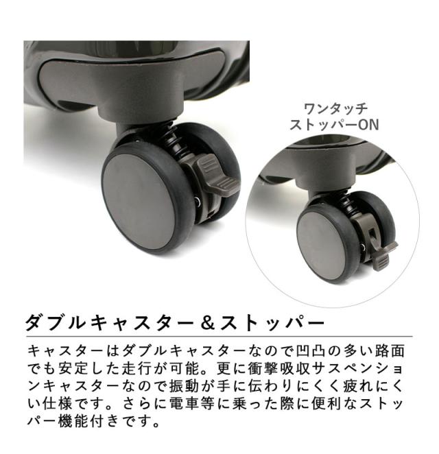 - ボトルホルダー付きの類似商品と比べると、こちらの方が高級感があります。タイヤにストッパーも付いているので、電車に乗った際に安心です。 これから沢山活用したいと思います。