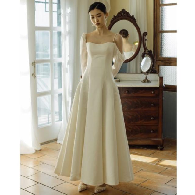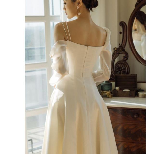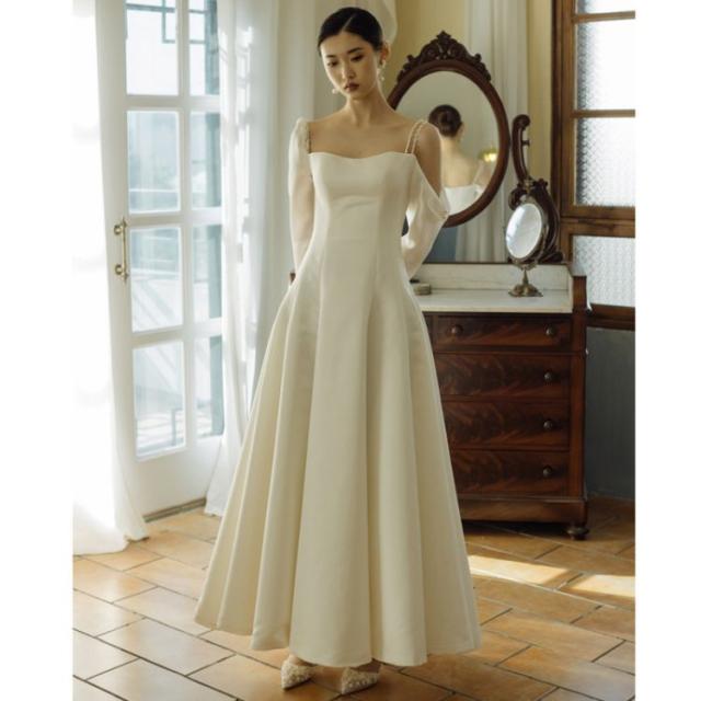 ウェディングドレス 夏服 24s春夏新作 着?せ 長袖 無地 シンプルレトロ エレガント おしゃれ お嫁さん 結婚式 ロングドレス Aラインドレス