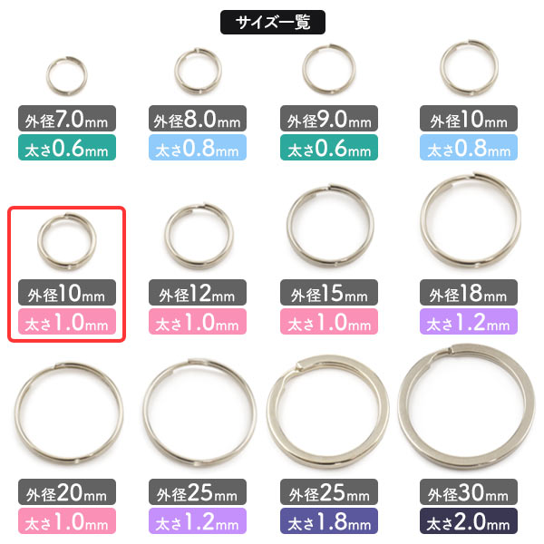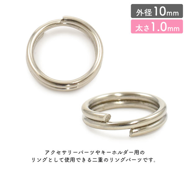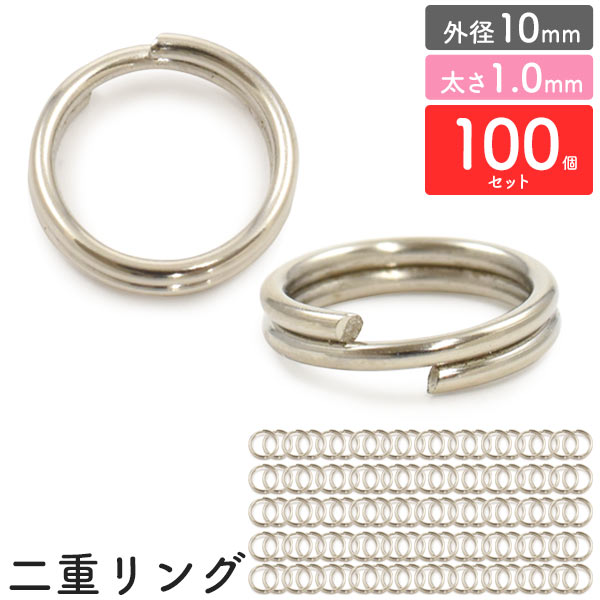 二重リング 外径10mm 太さ1.0mm 100個セット 二重キーリング アクセサリーパーツ キーホルダー DIY パーツ 素材 修理 キーホルダー作成 手作り工作 ストラップ作成 小物 手作りアクセサリー パーツ素材 手芸 2重リング