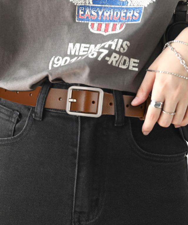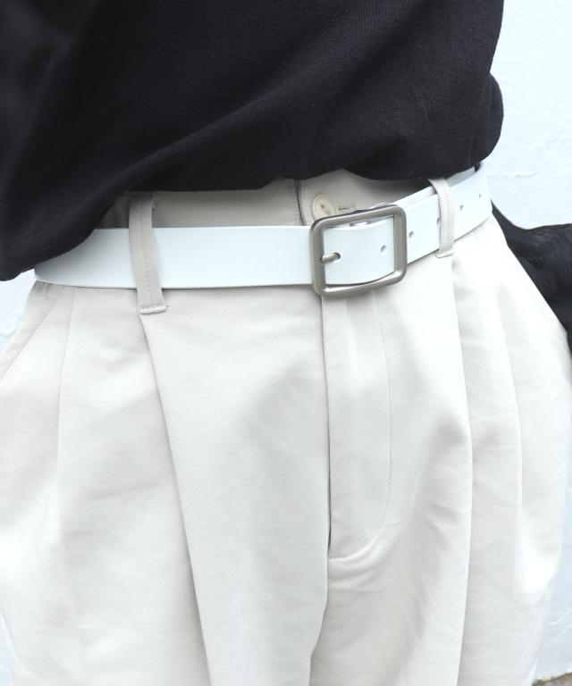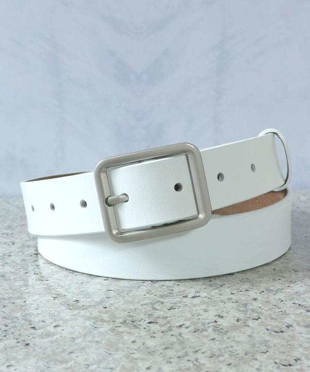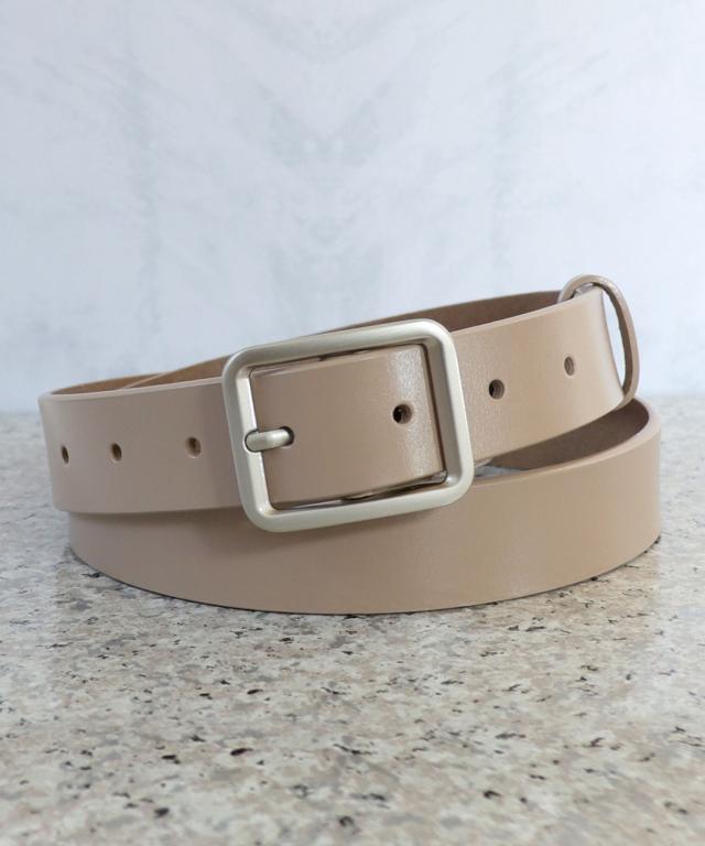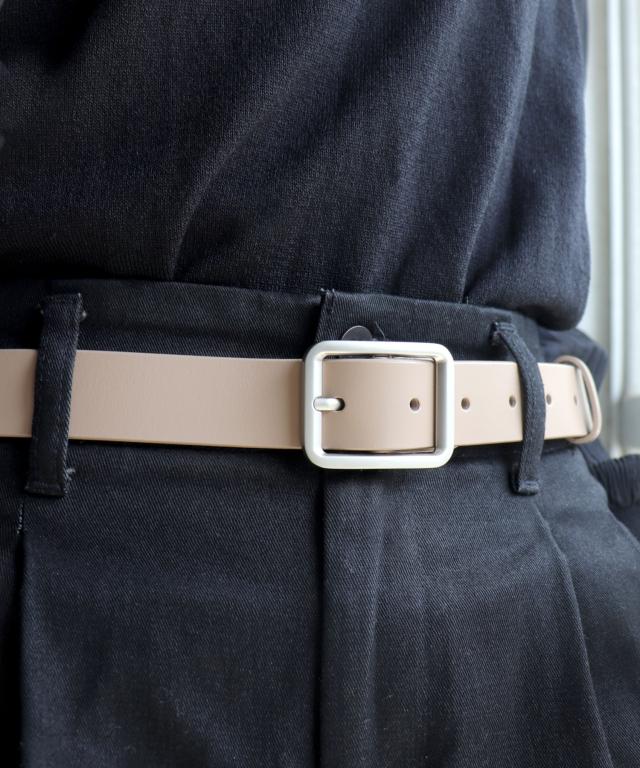 シルバーバックル太めレザーベルト。