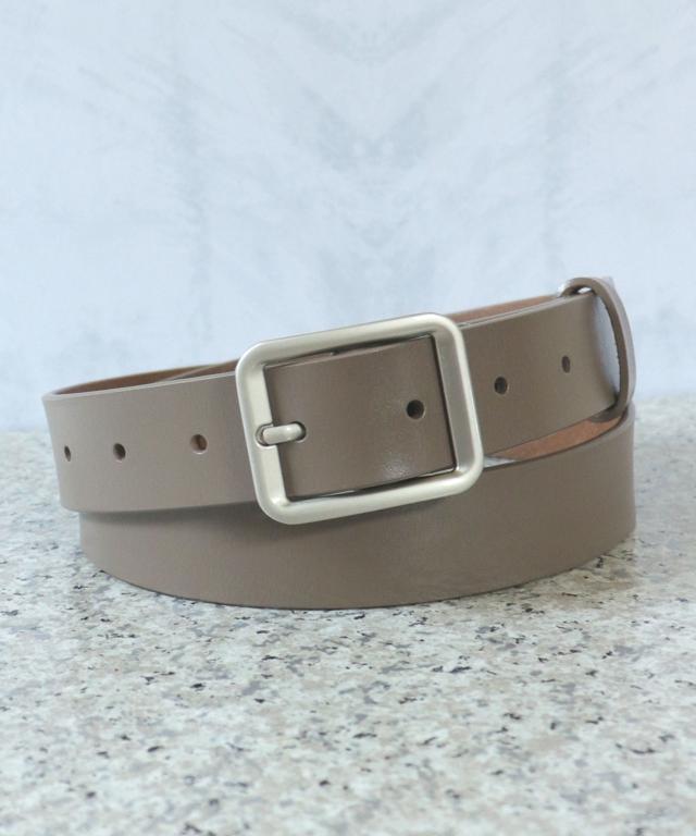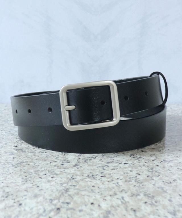 【牛革/長さカットOK/メンズ・レディース兼用/スクエアシルバーバックル太幅レザーベルト】