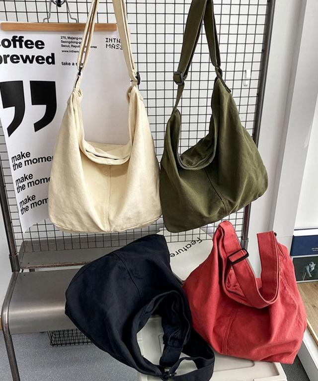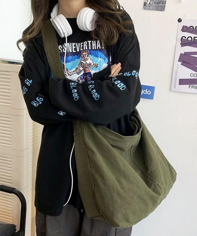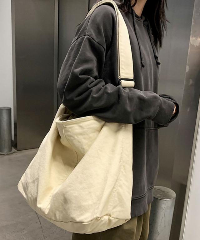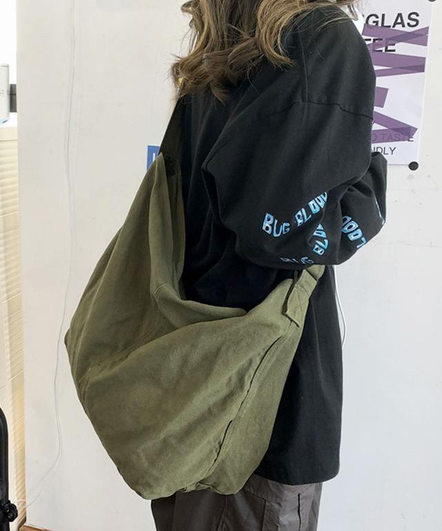 【大容量・A4収納可/2WAY/斜めがけ/メンズ・レディース兼用デザイン/バイオウォッシュ大容量斜め掛けキャンバスショルダーバッグ】