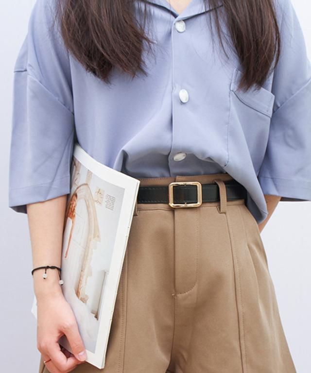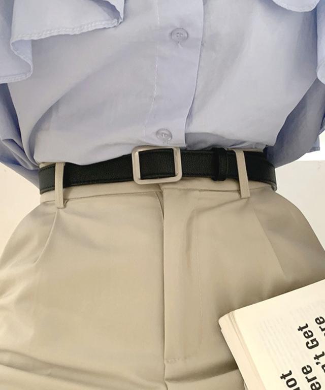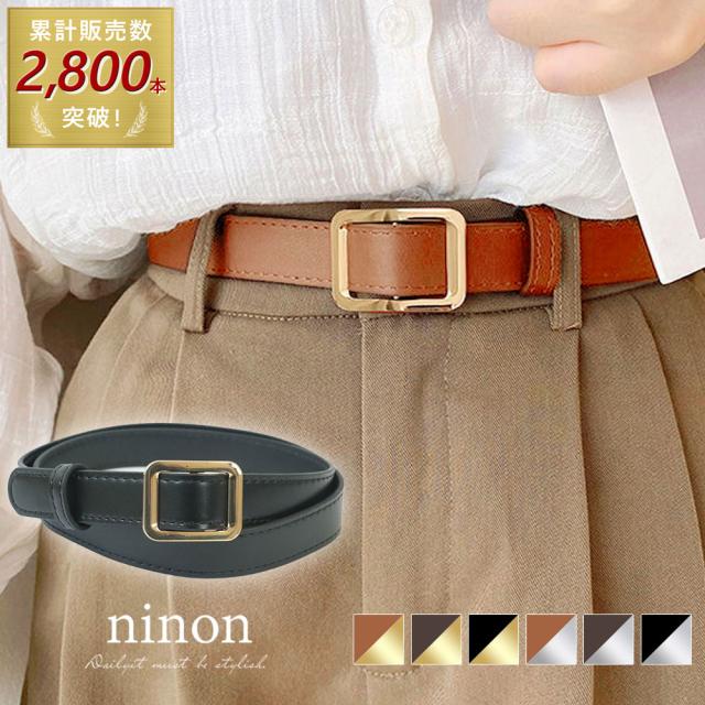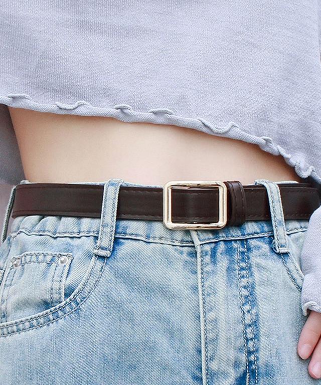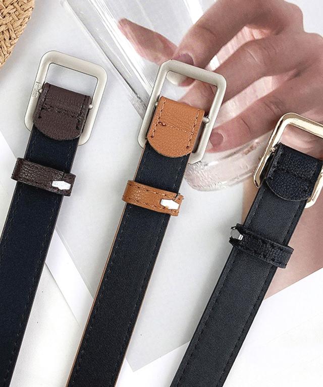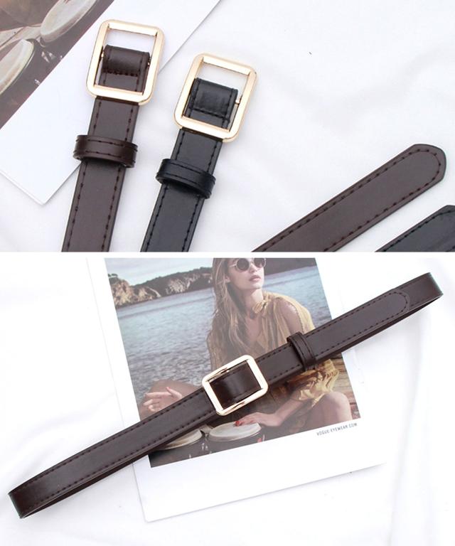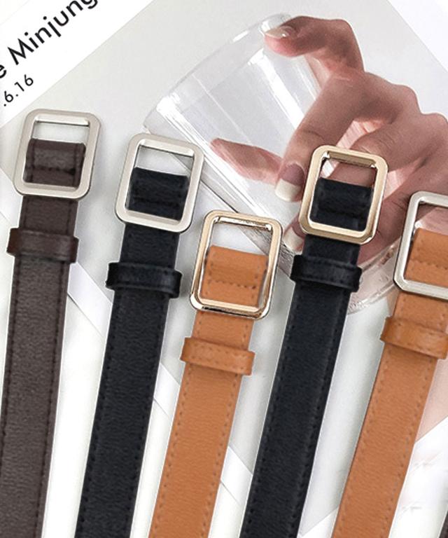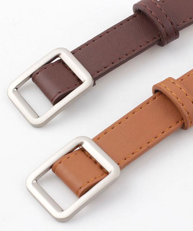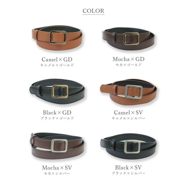 スクエアバックルPUレザーナローベルト。