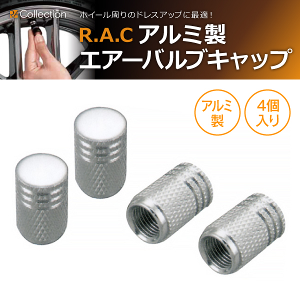 【在庫限】R.A.C 車用 エアー バルブ キャップ アルミ製 4個入り 500749