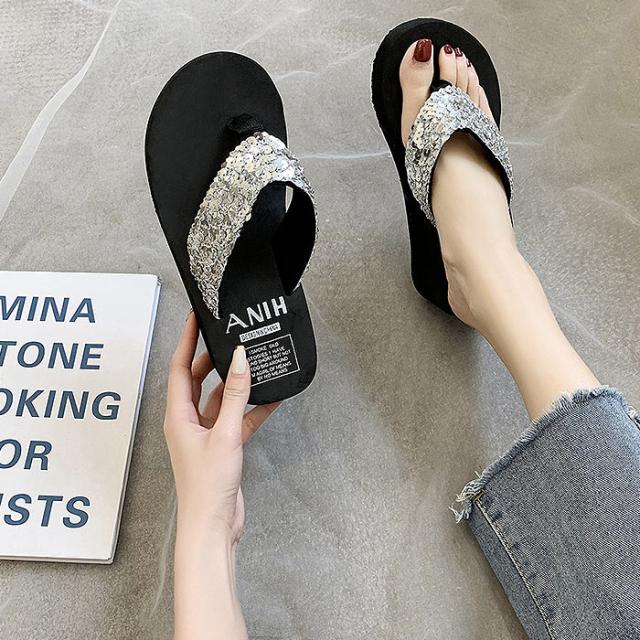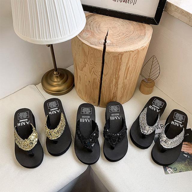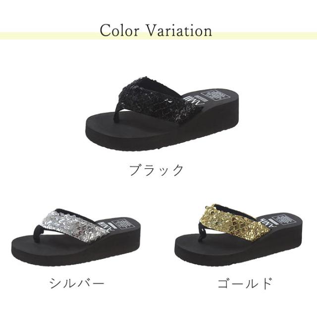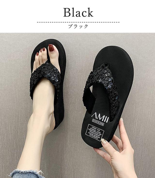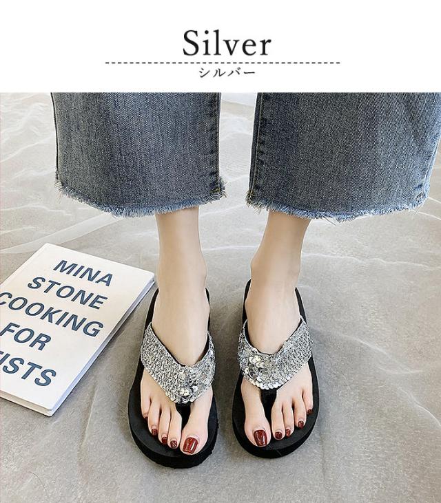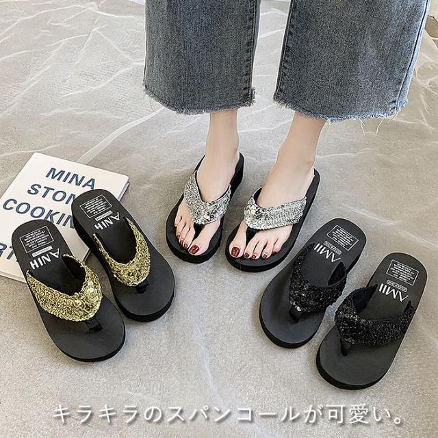 サンダル レディース おしゃれ 大きいサイズ 厚底 ヒール スパンコール ビーチサンダル 夏 スパンコール