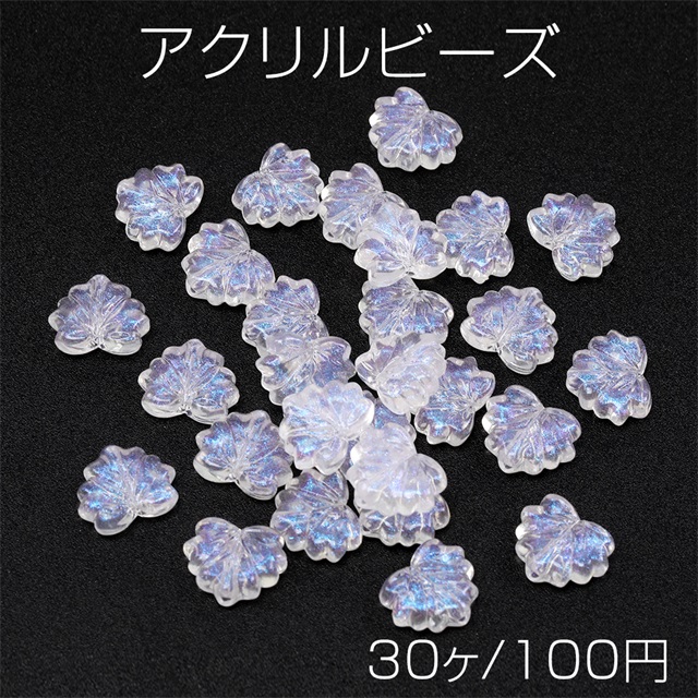 アクリルビーズ リーフ型ビーズ 葉っぱ型ビーズ リーフモチーフ 縦穴 約10×13mm(30ヶ)