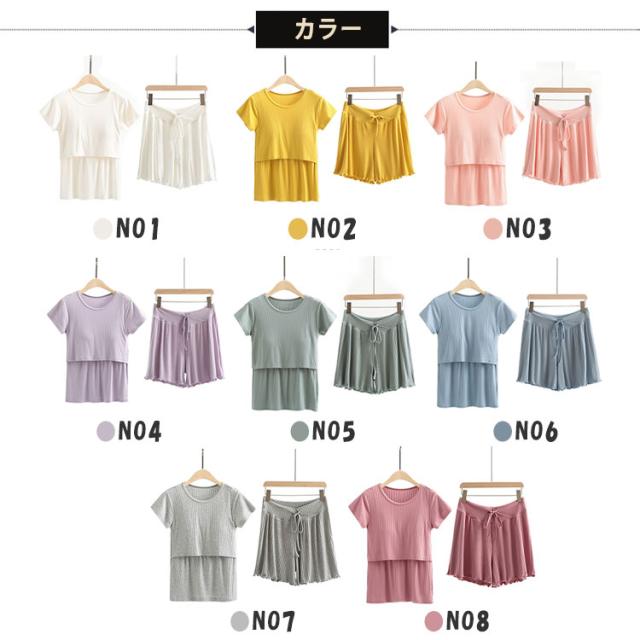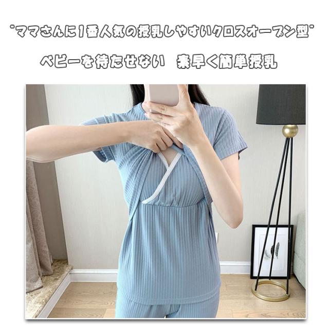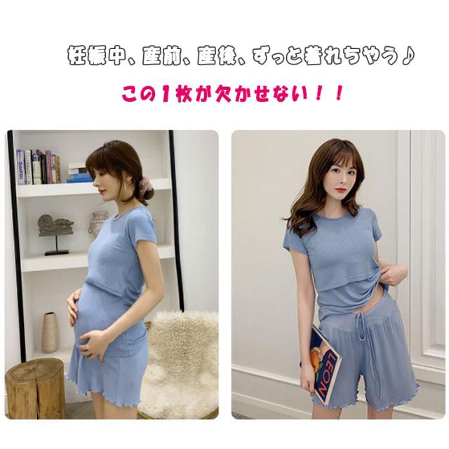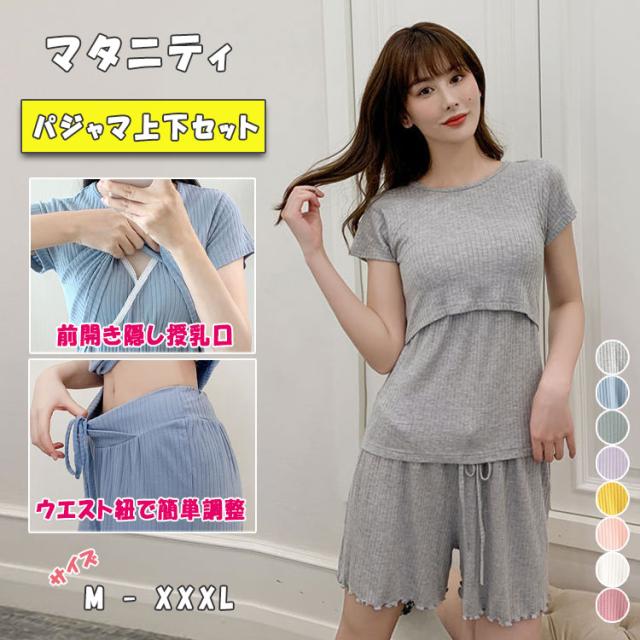 マタニティパジャマ 授乳パジャマ 上下セット 半袖 短パン 隠し授乳口 カシュクール クロスオープン 簡単授乳 ストレス軽減 ウエスト紐 簡単調節 弾力 伸縮 体型変化に対応 妊婦ルームウエア 春 夏 秋 M L XL XXL XXXL 産前産後 授乳期 妊婦服
