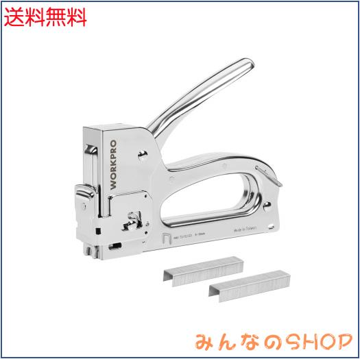 WORKPRO ガンタッカー ハンドタッカー ステープルガン ホッチキス 【台湾製】 ケーブルタッカー ハンドルロック機能 3in1 替針 200本付き